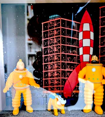 J’ai également trouvé cette mini vitrine avec une image au fond représentant Tintin, le capitaine Haddock et Milou devant un fond représentant la fusée « d’Objectif Lune ». Je suppose qu’il s’agit d’une création du vendeur qui semblait très « bricoleur ». En effet les personnages se trouvent mais sans la vitrine… J’ai trouvé sympa et donc acheté, désolé pour la mauvaise qualité de la photo (reflets).