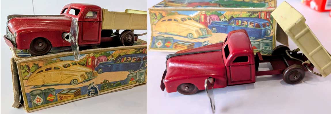 En toute bonne foi j’étais persuadé qu’il manquait vu la taille de l’engin une grosse remorque… Ce qui fait que je l’ai acheté seulement cinq petits euros en expliquant ça au marchand craignant de ne pas pouvoir en faire grand-chose. Une fois arrivé chez moi j’ai découvert que l’on pouvait commander pour une vingtaine d’euros (envoi compris) la grue tubulaire métallique avec le crochet et son fil que je n’ai toujours pas installé d’ailleurs… Bref le jouet fut facilement reconstitué dans sa configuration normale vu qu’il ne lui manquait rien d’autre, les gros pneus, pas faciles à trouver complets, etc. J’ai donc eu un remord hélas trop tardif j’aurais dû donner davantage à ce marchand qui en plus était sympa. Dans l’état du mien, une fois que j’aurai donc installé le crochet ça vaut dans les 80 euros… Ces questions de prix, je le répète, pour moi n’ont d’utilité que pour matérialiser l’intérêt « collectionneur » des objets et pour ne pas payer trop cher. Il faut les relativiser y compris pour les vinyles car avec de la patience on peut avoir les pièces nettement en dessous de la cotation… Ce qui prime pour moi c’est l’attrait de l’objet et terme de nostalgie mais aussi éventuellement parce que je les trouve sympas d’où les achats « neufs » (ou presque) présentés sur cette page qui n’ont pas une valeur démente.